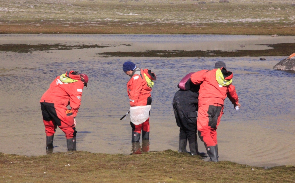 Prebieha prevažne na tundre, ľadovcoch, prípadne vodných tokoch a jazierkach. Vždy sme si urobili plán výjazdov do terénu na jeden alebo dva dni dopredu. Samozrejme, rozhodujúcim faktorom bolo vždy počasie. Napríklad pre výskum na ľadovci, ktorý sa nachádzal na opačnej strane zátoky, bolo ráno potrebné naložiť do člnov veľké množstvo materiálu na 10-hodinovú prácu v teréne. Prenášali sme motorovú pílu, vrecia, plachty, tyče, vŕtacie zariadenie, malý terénny mikroskop atď. Tento materiál, vrátane nás vedcov, sa previezol k ľadovcu, vyložil a bolo ho treba vyniesť často aj dva kilometre po ľadovci na miesto výskumu.